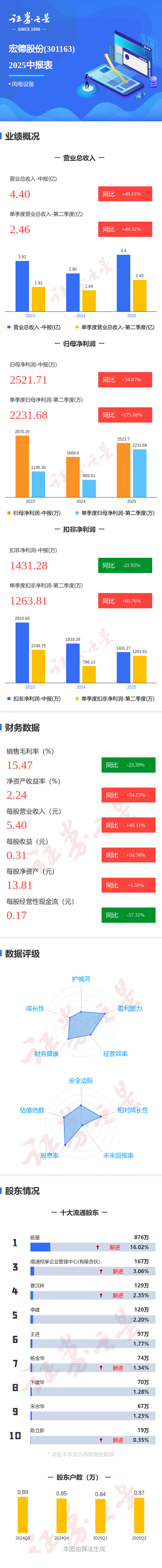 图解宏德股份中报: 第二季度单季净利润同比增长175.68%
